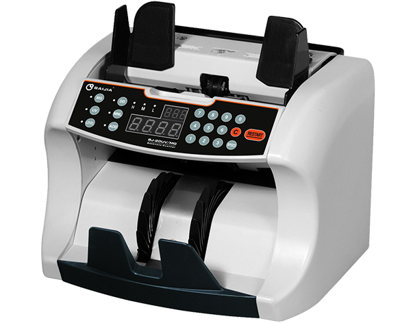 The BJ20 banknote counter is an intelligent high speed, high volume bill counter, capable to count up to 1,500 banknotes per minute. Equipped with four false detecting functions, it can hold up to 300 banknotes.