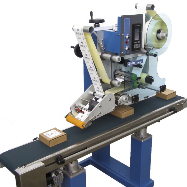 COLLAMAT 4300 labeller combines technology and experience with a robust construction. It applies self-adhesive labels quickly and accurately on moving products of various formats.