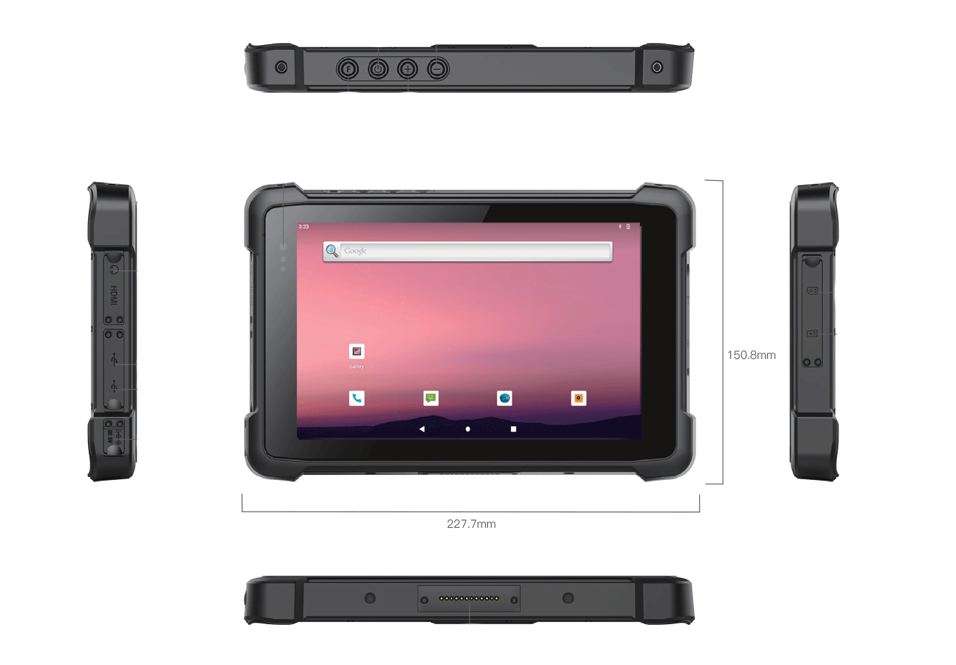 Equipped with an 8’’ IPS display (800×1280) with 700 nits brightness, it ensures optimal visibility even in outdoor environments. The 5-point capacitive touchscreen provides fast and accurate response.